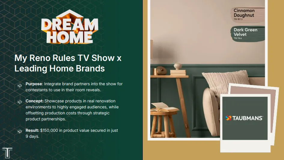 Result: Fully furnished, on-brand homes on screen – and partners featured in prime-time without paying traditional ad rates.